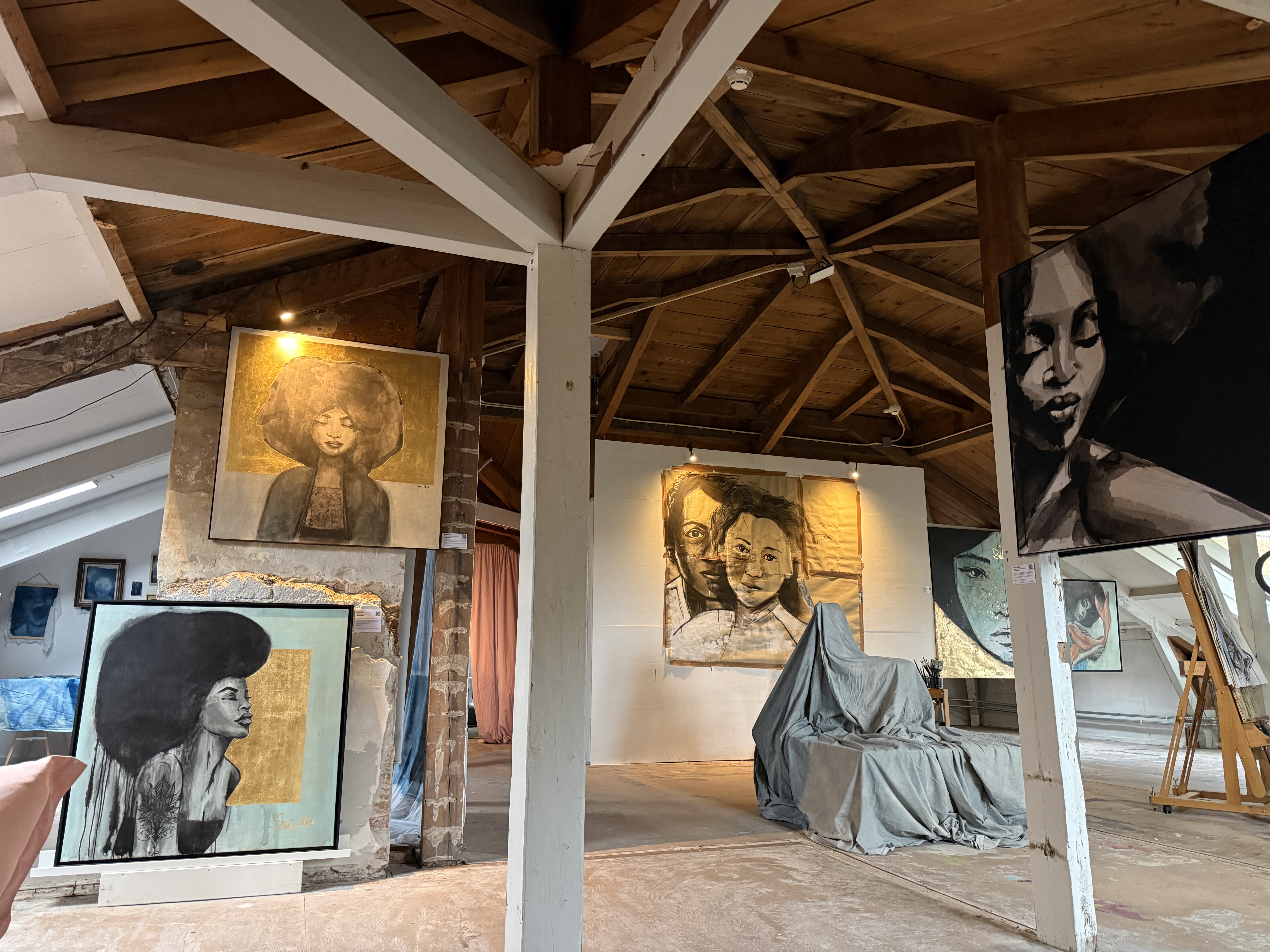 In the rustic attic of the historic Oohm building on the Vogelenzang estate, you’ll find the studio of visual artist Eva Miedema. A unique location surrounded by nature. Up three flights of stairs (unfortunately, there’s no elevator) and you’ll find yourself in a unique space to create and discover.